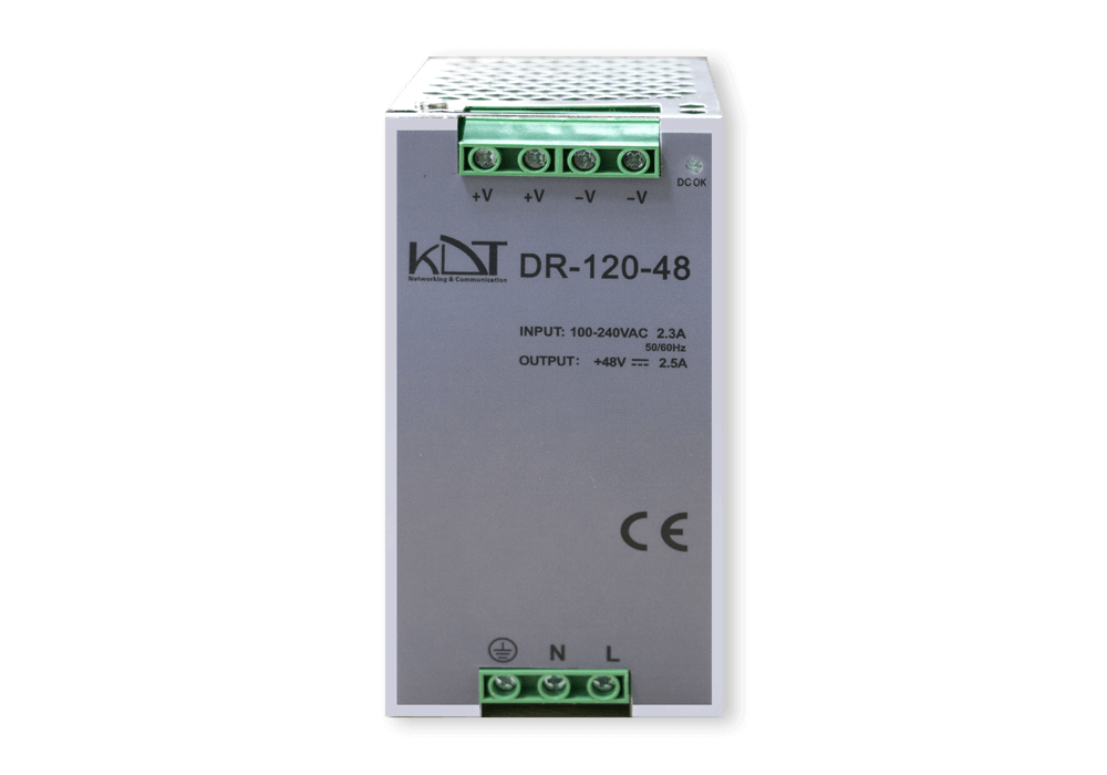 البته تمام سوییچ های صنعتی کی دی تی از تجهیزات شبکه کاربردی بوده که از ورودی دوبل تغذیه برخوردار هستند و میتوانید جهت پایداری صد در صدی در پروژه خود همزمان دو دستگاه منبع تغذیه کی دی تی را به آن ها متصل نمایید تا در صورت صدمه دیدن یک منبع تغذیه، بلافاصله منبع دوم بدون حتی یک لحظه خاموشی سوییچ شبکه صنعتی کی دی تی در مدار قرار گیرد. این منبع تغذیه دارای خروجی48 ولت با حداکثر توان خروجی 120 وات موثر میباشد.